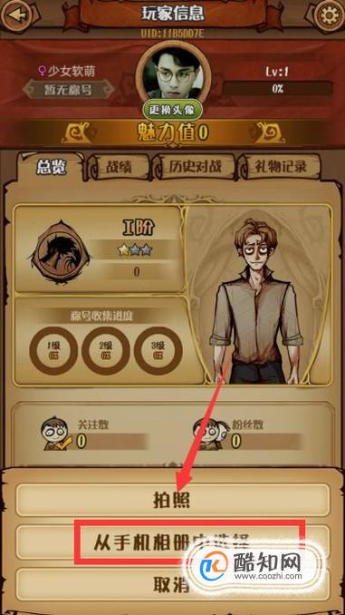 【玩家信息】的页面,在空白头像的页面点击下方的“更换头像”这一项。