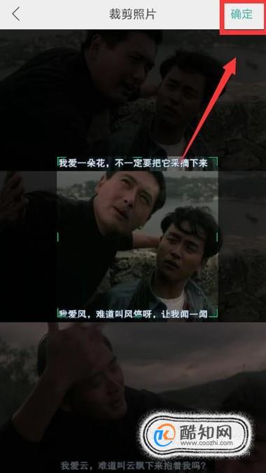 【剪裁照片】的页面,把选择好的图片给剪裁一下合适的大小,剪裁为正方形的,可以随意的把图片给调大和调小,点击右上角的“确定”这一项。