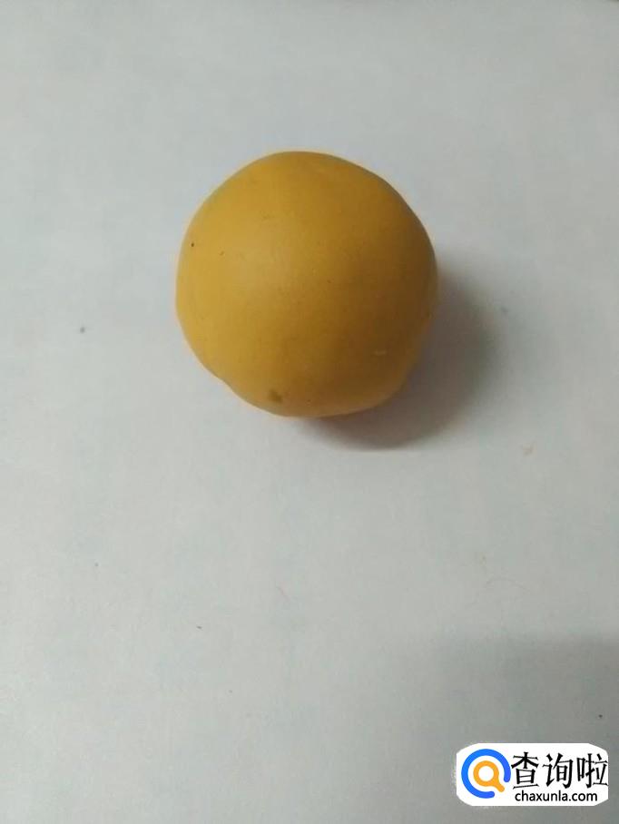 把桔色彩泥在手心里团成一个圆球,当作绣球。