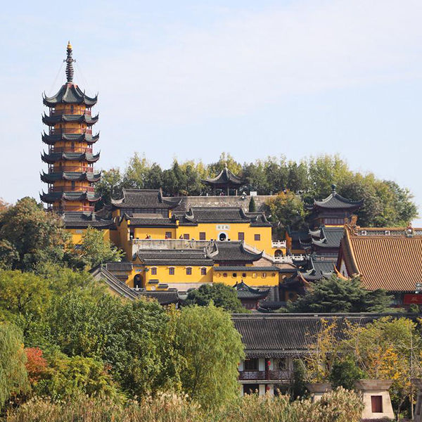 金山寺位于今江苏镇江市区西北的金山上,始建于东晋,是中国佛教诵经设斋、礼佛拜忏和追荐亡灵的水陆法会的发源地。该寺布局依山就势,使山与寺融为一体。寺内主要建筑为天王殿、大雄宝殿、观音阁、藏经楼、方丈室等。