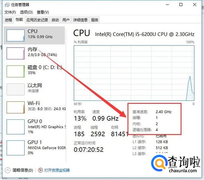 打开之后,即可看到cpu处理器的线程数,如图所示。