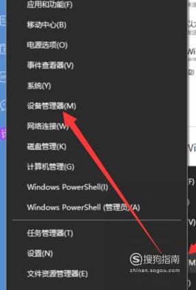 打开电脑,右击Windows按键,选择“设备管理器”,如图所示。