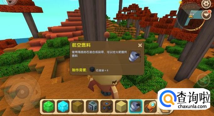 火箭制作完成后,我们还需要获取一些航空燃料,航空燃料是由石油块制作而成的,如图所示。