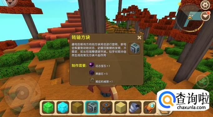 转轴方块是由远古宝石、黑晶石和推拉机械臂制作而成的,如图所示。