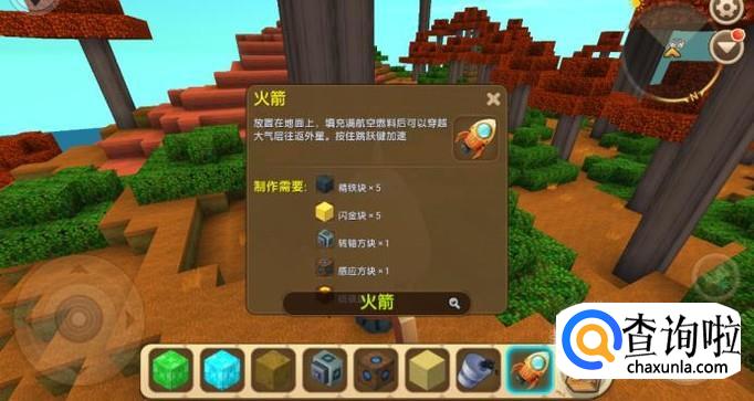 然后解锁火箭图纸,如图所示,火箭是由精铁块、闪金块、硫磺晶砂等物品制作而成的,如图所示。