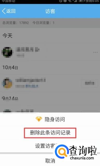 然后我们找到我们自己的访客记录,之后我们点击后方的按钮;