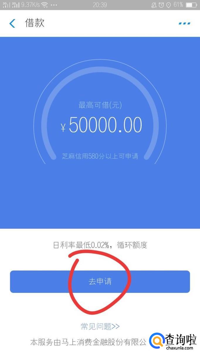 芝麻信用580以上才可以申请的,还有我们填写地址的时候一定要具体到XX号XX层XX单元。这样申请成功的几率会大一些。