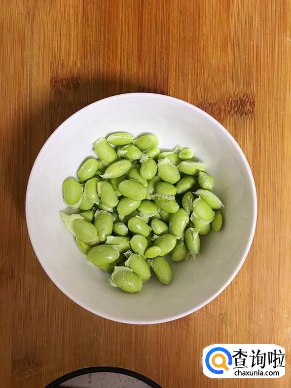 加入毛豆米,再加入少许水,大火煮开后转中小火1分钟左右。
