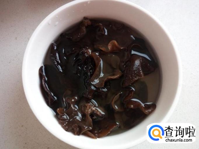 用温水快速泡发木耳,把泡发好的木耳收拾清洗干净,控干水分,备用。