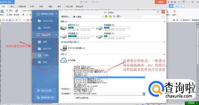 选择保存,选择保存位置及保存格式(建议保存成低版本格式 .doc )。
