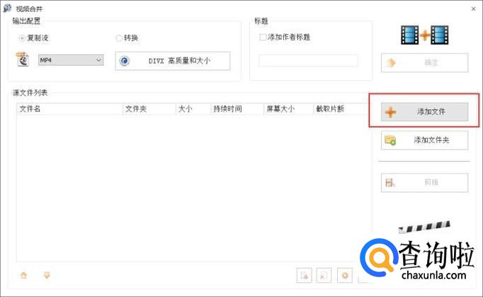 接下来打开的页面中,点击“添加文件”选项,然后选择要进行合并的两段视频文件。