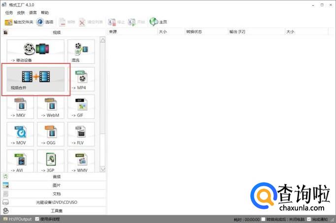 以格式工厂软件为例,打开格式工厂软件主页面,点击“视频”菜单选项,并选择“视频合并”选项。