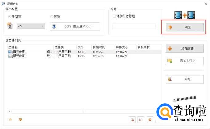 视频文件选择好完毕之后,点击页面右上角的“确定”按钮。
