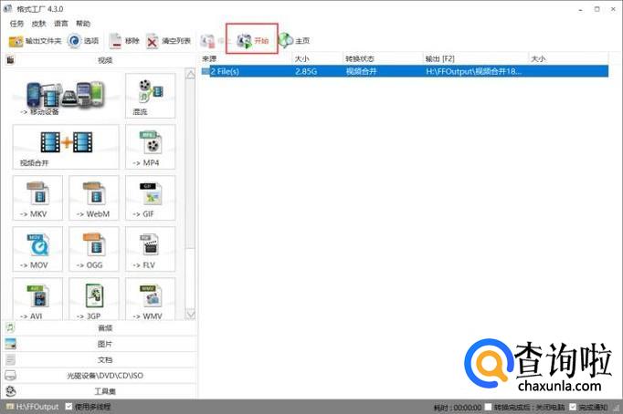 最后,视频合并的任务就被添加到任务列表中,点击“开始”按钮,即可开始合并选择的视频文件片段了。