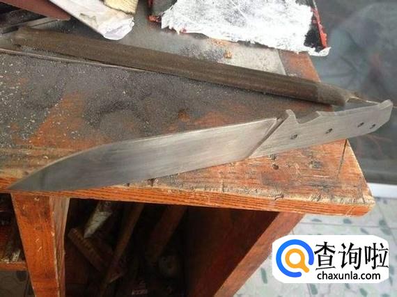 首先我们制作刀具都需要一个东西---模版,也就是通常说的模具,就是将模具放在一块长方形的铁片上,用笔勾勒出刀得大致形状,然后用切割机,吧多余部分削去。
