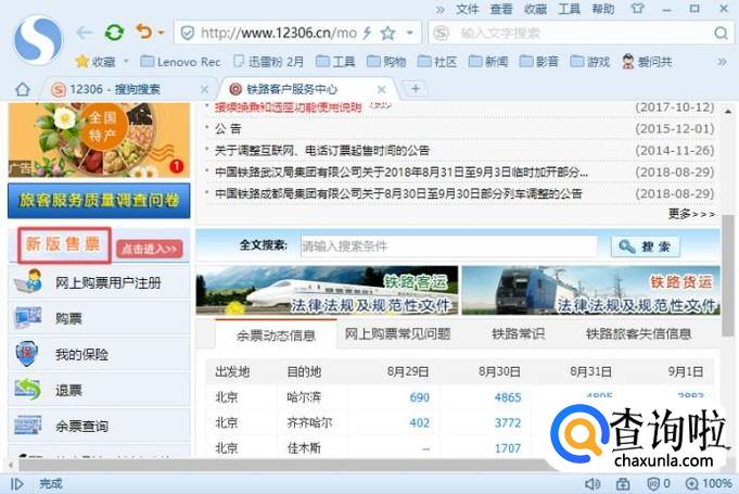 首先,我们打开我们电脑上面的浏览器,然后我们在搜索引擎中输入12306,之后我们按回车键;