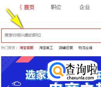 进入到淘工作首页。然后,在搜索框内输入你想要找的职位,再点搜索。