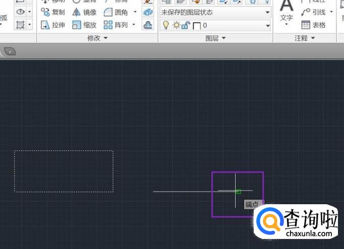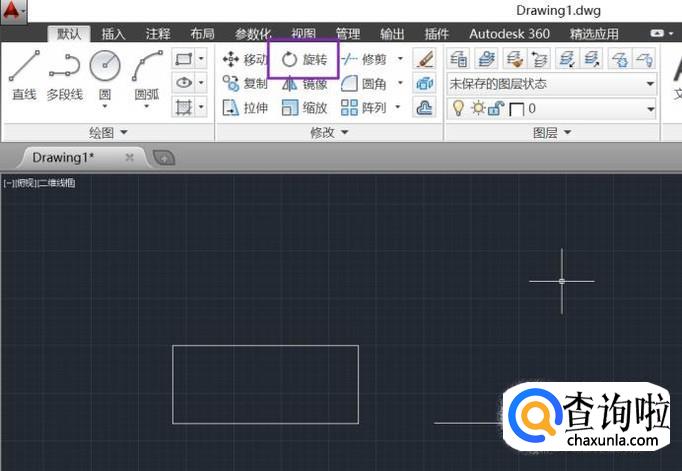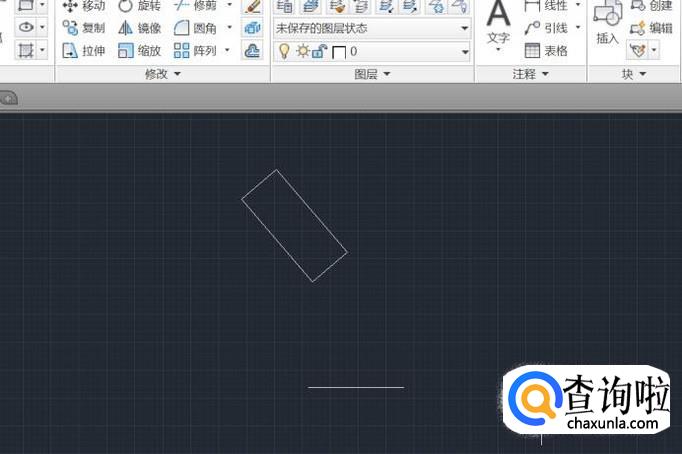 首先,我们点击打开电脑上面板的CAD,然后在里面画个矩形和一条直线,如图所示;