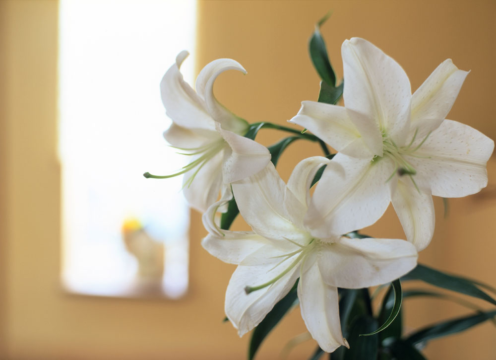 百合喜光,平时养护要让百合多晒太阳,光照充足有利于植株的生长和开花。平时可以掂量着盆土的重量,感觉明显变轻的时候浇灌一次透水。在百合发芽且植株长到10cm高时,每隔半个月给花浇一次氮磷钾均衡的肥水,等植株长高后改用磷钾肥,直到百合冒花苞后停止施肥。等百合花败后修剪残花,追施肥水继续养着即可。