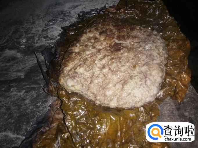 把肉饼用剩下的桐叶一层层全部包裹好。