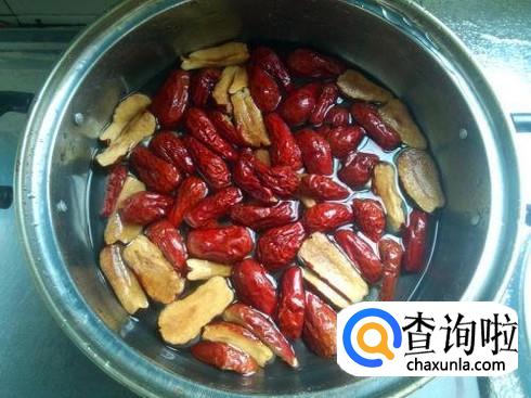 大红枣清洗干净,在水里浸泡二十分钟左右,锅里加上清水,把大红枣放进去熬煮直到煮开,然后把生姜放进去一起煮。