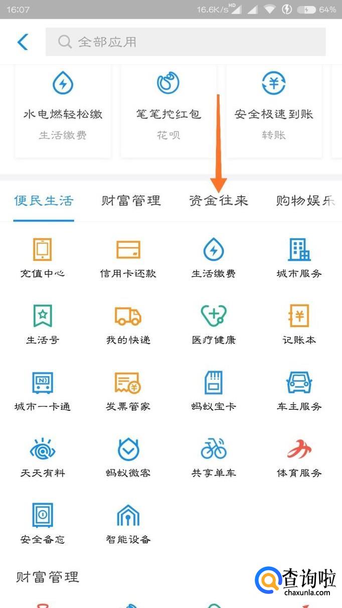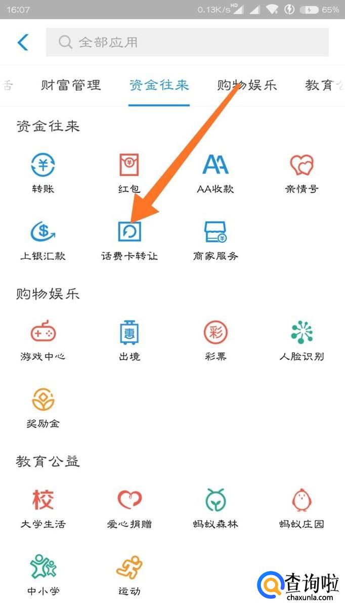 点击选择上方的“资金往来”,然后点击选择话费卡转让。