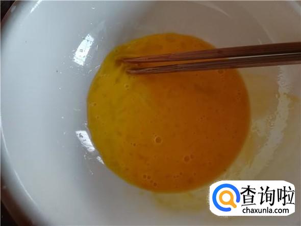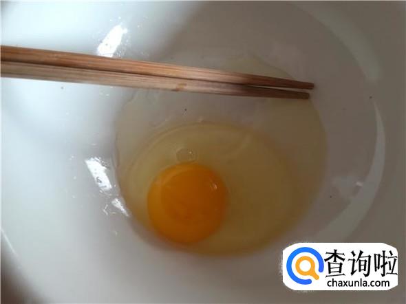 在烧水的时候,在碗里打入一个鸡蛋,用筷子调散。