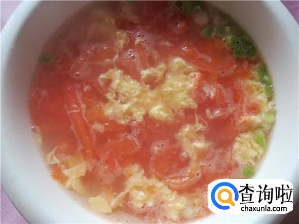 将搅匀的西红柿蛋花汤倒入放入葱花的汤碗中,西红柿蛋花汤就完成了。