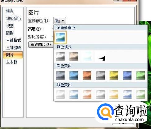 然后你可以点击重新着色右侧的三角形,选择自己想要的图片颜色,如下图所示。