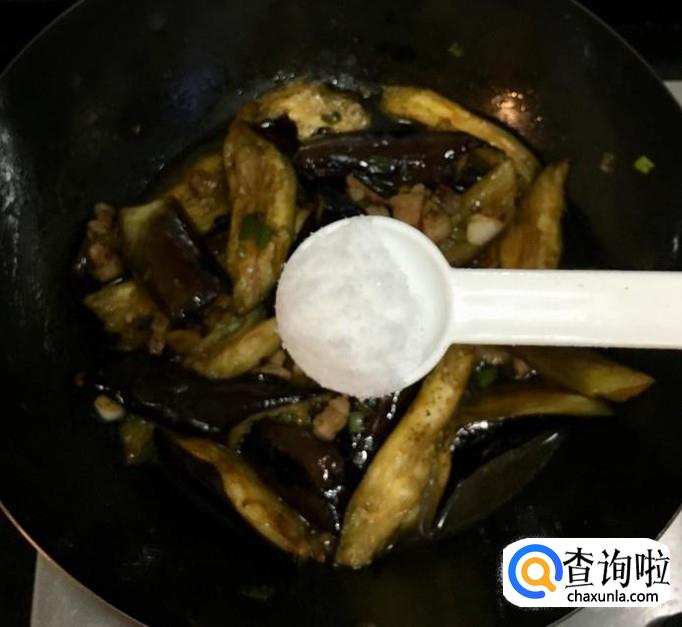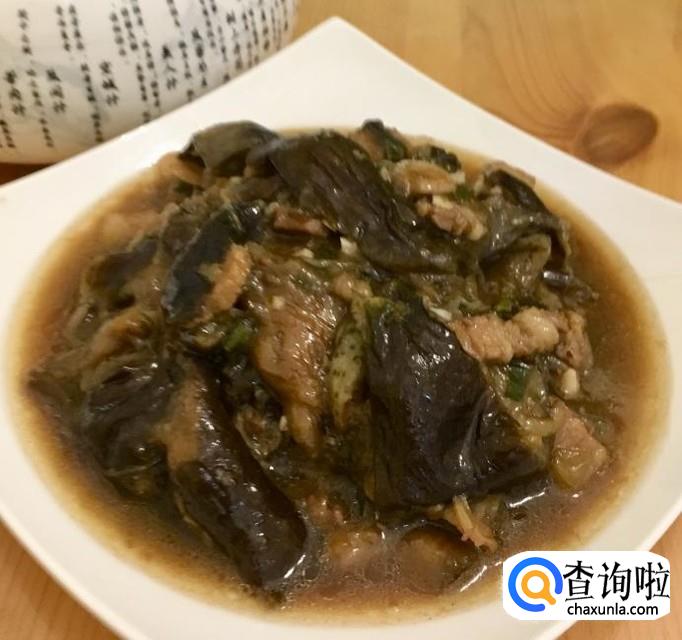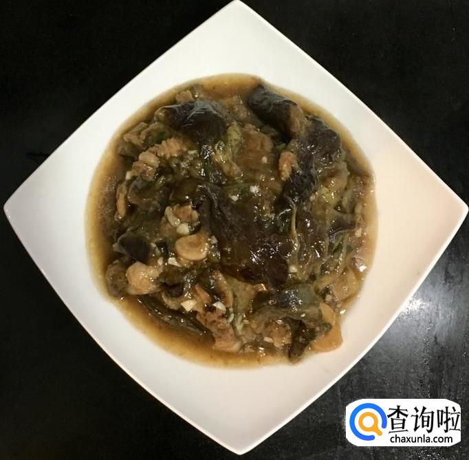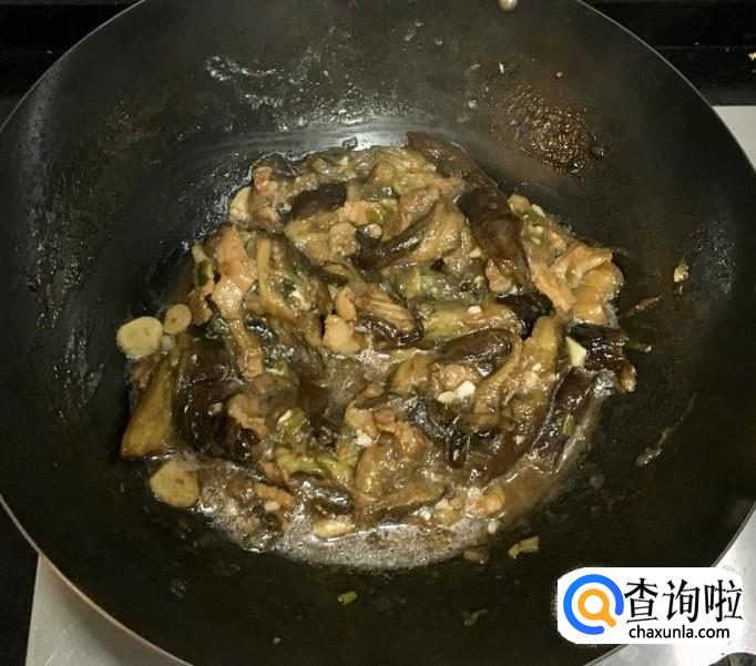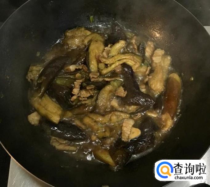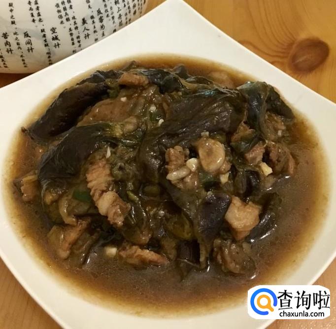 茄子,五花肉,蒜,葱,花生油,盐,水等等