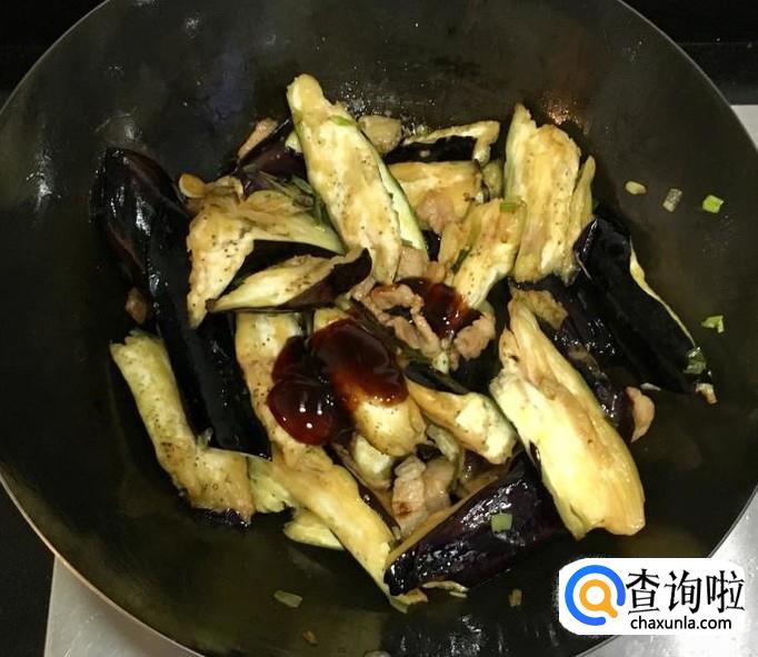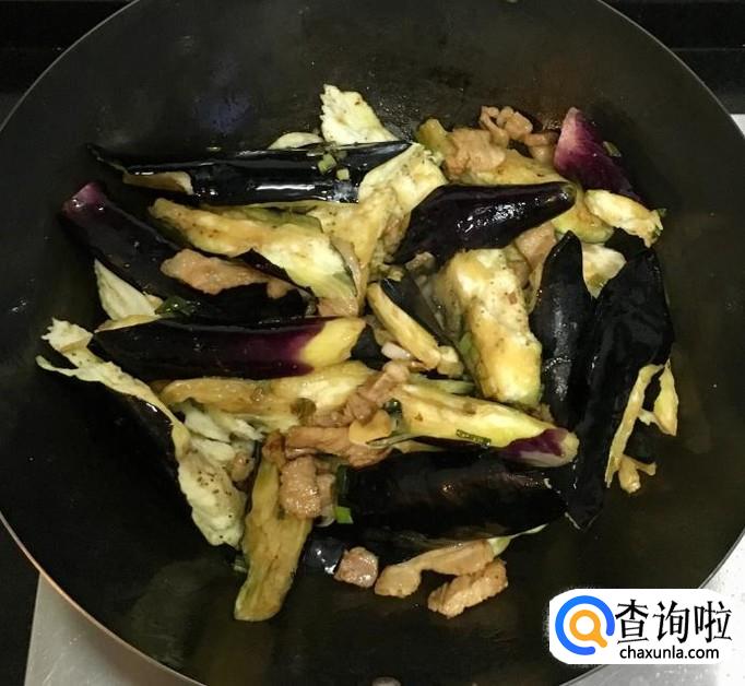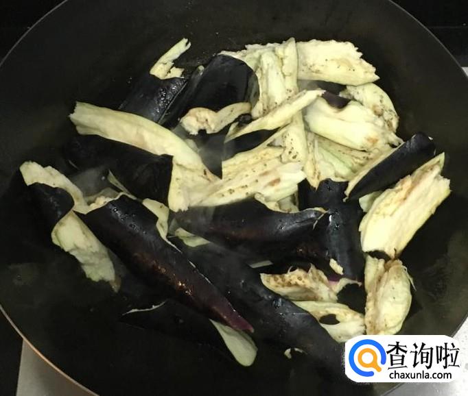 倒入掰好的茄子块翻炒均匀使茄子充分吸收油脂