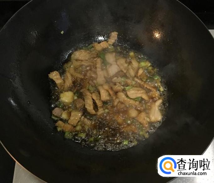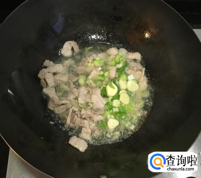 热锅加入多一点的花生油把五花肉片炒香并出油,放入葱花、蒜片爆香后料酒、生抽烹锅。茄子喜欢大油水比炒其它菜的油多放一些才更香。