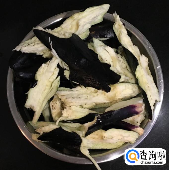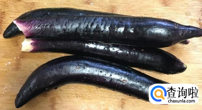 茄子四个去掉茄子蒂清洗干净并控干水分,然后掰成大一点的茄子块备用。