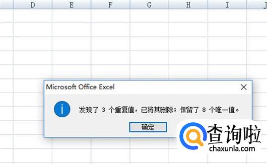 点击确定会看到弹出了一个发现重复值,已经删除,保留唯一值的对话框,见下图