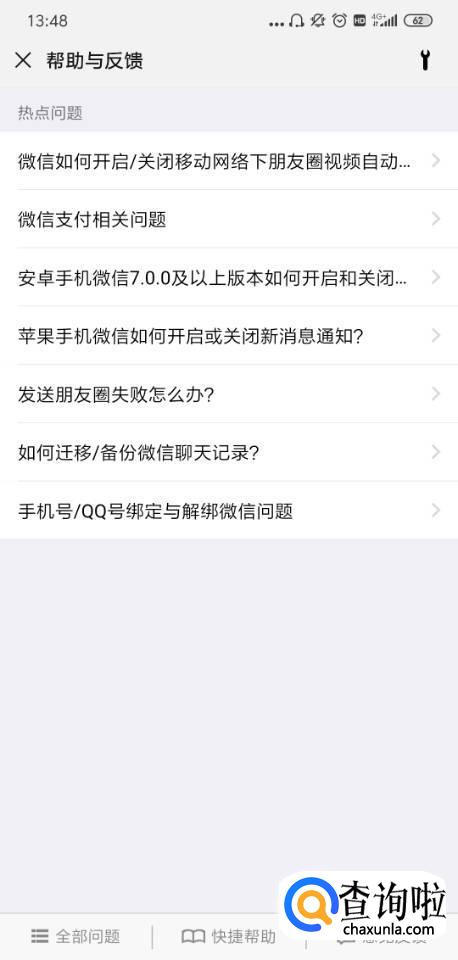 在“帮助与反馈”界面中查看是否当前列表存在自己的问题,若存在,则直接进入响应选项,若不存在自己的问题,则点击右上角的“小扳手”图标