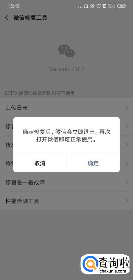 找到自己问题的所属类别,并点击响应的修复工具,点击“确定”,微信异常就可以被修复了!