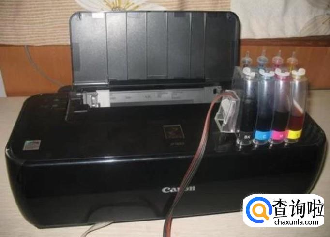对准以后把墨盒放入打印机中,关闭打印机的后盖,插上电源。