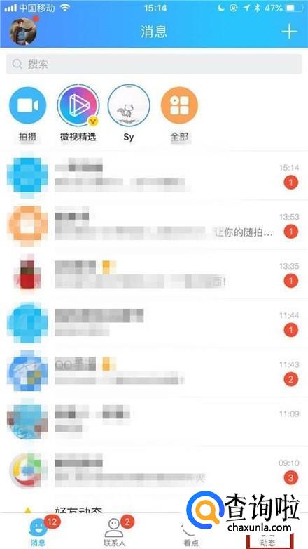 然后点击屏幕右下方的动态,如下图所示。