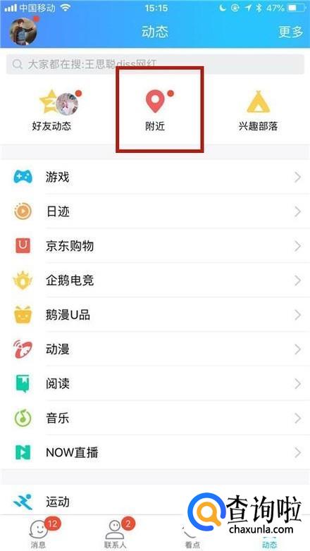 然后点击附近的人,如下图所示。