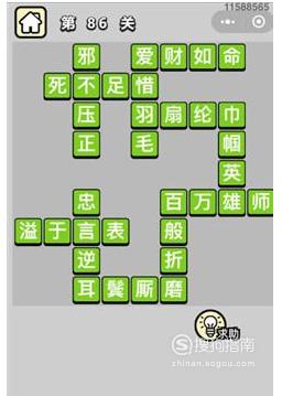 羽扇纶巾、巾帼英雄、百万雄师、百般折磨、耳鬓厮磨、忠言逆耳、溢于言表、爱惜羽毛、死不足惜、邪不压正、爱财如命。