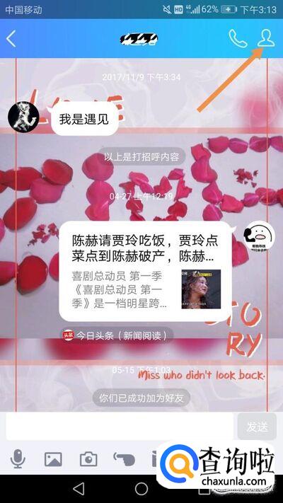 然后打开和好友的聊天界面,点击右上角的人头,如下图。