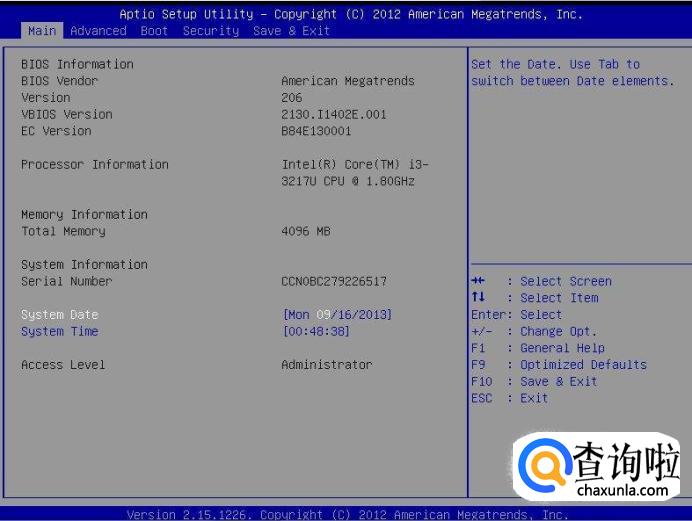 F1进入BIOS设置界面
