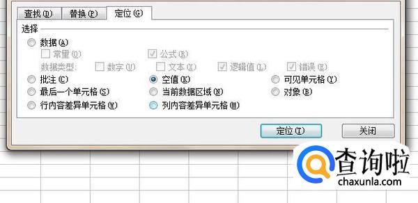 然后勾选空值并点击定位,如下图所示。