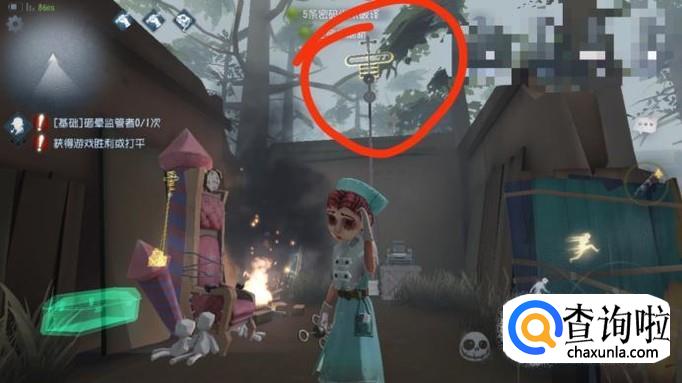 进入游戏后,寻找金色天线,如图,天线下方就是密码机