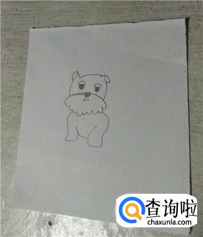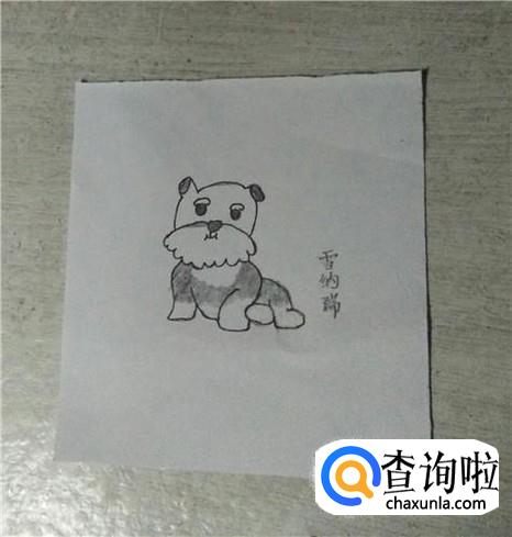 第九步是用签字笔勾勒,加粗线条,然后上色。如下图所示。萌萌哒的雪纳瑞就画好了,是不是很简单呢?多画几次一定会比小编画的好看的,快去试试吧。