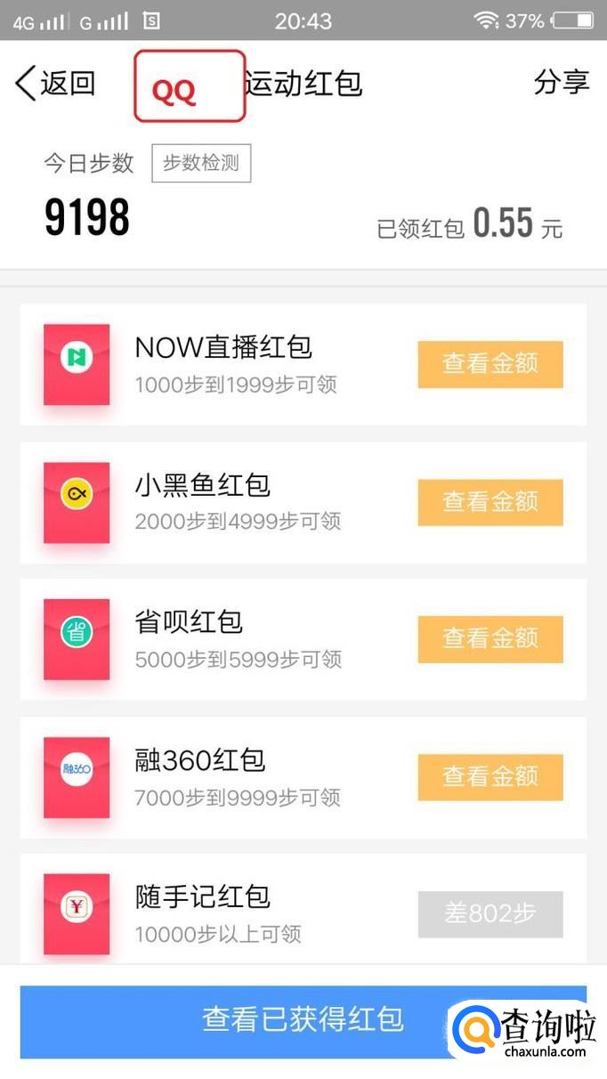 第二类是完成任务领红包。比如QQ的运动红包、支付宝的运动红包挑战赛等,每天走一定步数,都能领红包。