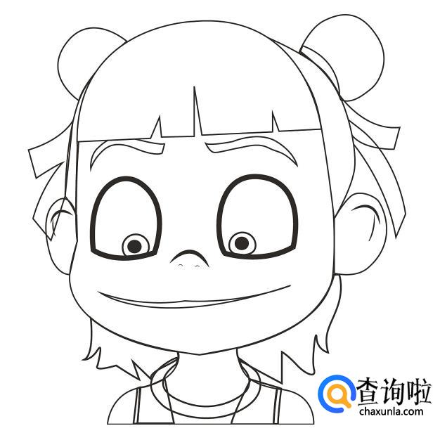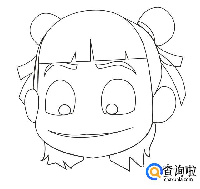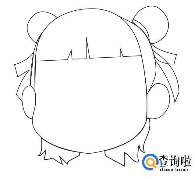 在脸颊的两边画上一对半圆形的耳朵。在哪吒的两边画两个圆形的包子头,然后在给他画出头绳。