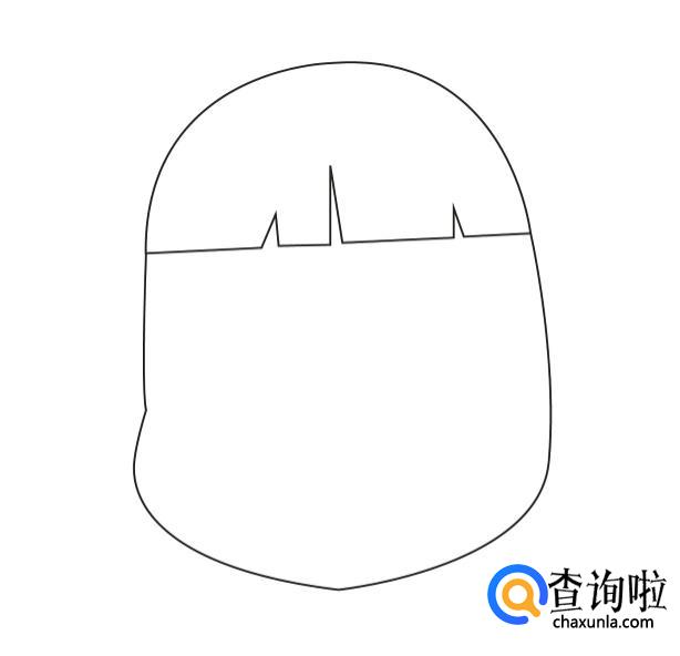 首先,画出头部的雏形,画一个“u”字形的脸颊,脸部的上半部分画上刘海。