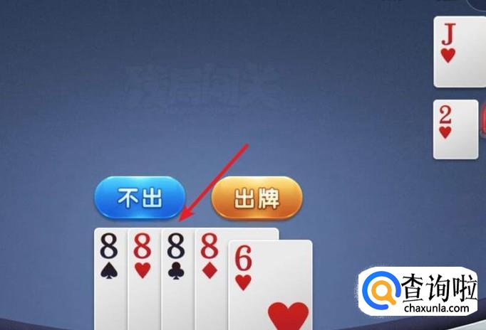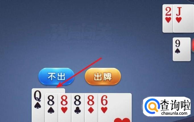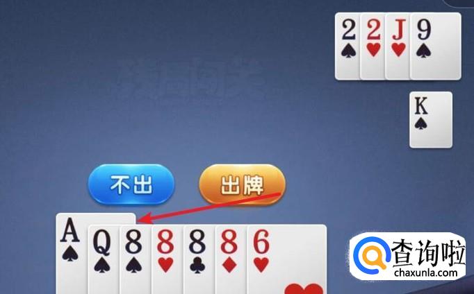 对方出2,我们就出炸8,就只剩一张6了,出完就顺利过关了。