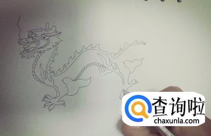 最后将龙的鳞片画上,整体的弧度感加强,一条龙就画好了。